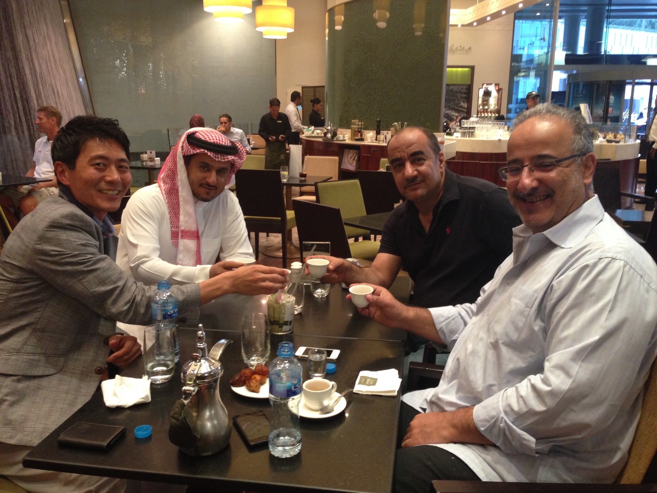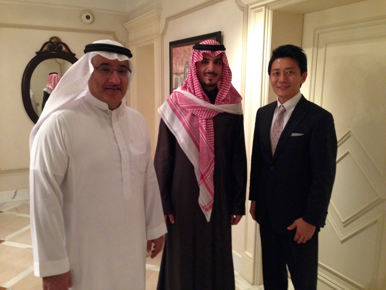 중동의 왕자라 그런가? 아우라가 느껴졌다. 악수를 했을 때 마치 고운 여자의 손과 같이 차갑고 부드러운 느낌이 인상 깊었다. 얼굴은 햇볕을 전혀 보지 않았던 사람처럼 창백했다. 키도 크고 늘씬하였다. 담배를 피우는 사람 치고는 피부가 너무 고왔고, 목소리는 여자처럼 얇고 갈라졌다. 조선시대의 왕자가 있었다면 이런 모습이 아니었을까 상상해보았다. 사진을 찍어서 회사에 보여줘야 한다고 했더니, 페이스북에는 절대 올리면 안된다고 하면서 응해주었다. 지금은 올려도 되는지 모르겠다.